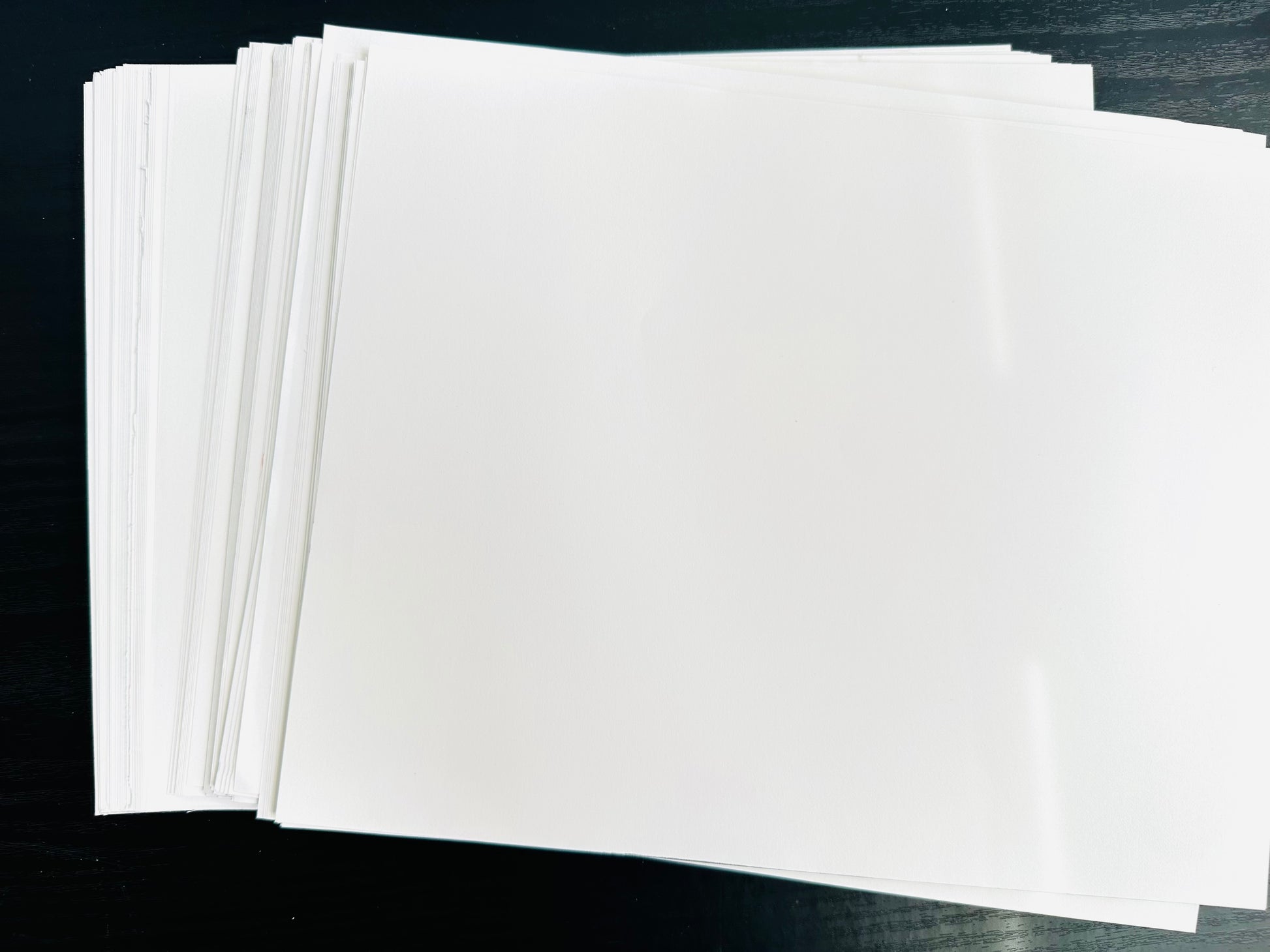 70 lb. Text weight paper, approximately 8.5” x 11”, approximately 90 sheets. Wonky edges, not all sheets are the exact same size. These are blank sheets, not printed.